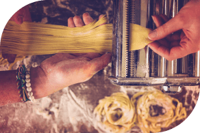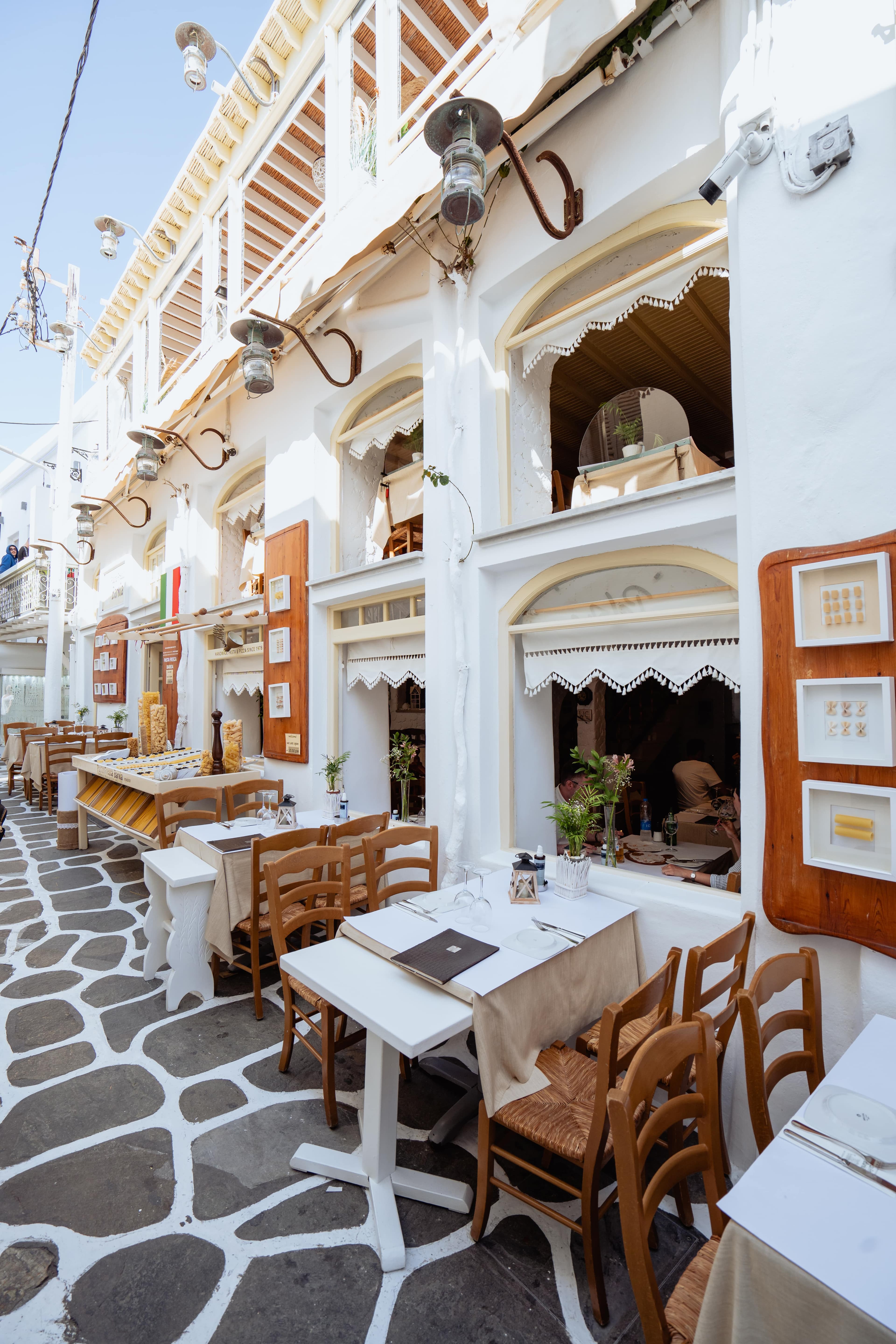 Step into a world of rustic charm and warm hospitality at Pasta Fresca Barkia. Nestled in the heart of Chora, our restaurant's space welcomes you with an inviting ambiance that captures the essence of Italy. With its cozy interiors, cycladic aesthetic, and soft lighting, our dining area exudes an intimate and relaxed atmosphere. Take a seat at our comfortable tables, adorned with simple yet elegant decor, and allow yourself to be transported to the traditional trattorias of Italy.